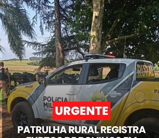 A Patrulha Rural da Polícia Militar atendeu, nos últimos dias, duas ocorrências de furto de bovinos em propriedades rurais nos municípios de Capanema e Planalto. Os casos foram registrados em comunidades distintas e seguem sob investigação da Polícia Civil.