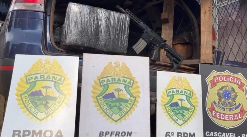 A partir de informações repassadas pela Polícia Federal, PMPR mobilizou policiais do Batalhão de Polícia de Fronteira (BPFRON), do 6º Batalhão e do Batalhão de Polícia Militar de Operações Aéreas (BPMOA) para interceptar um carro suspeito que transportava 1.161,5 quilos de maconha prensada e 41,6 quilos de maconha do tipo capulho, além de um fuzil Colt calibre 5.56 mm com carregador