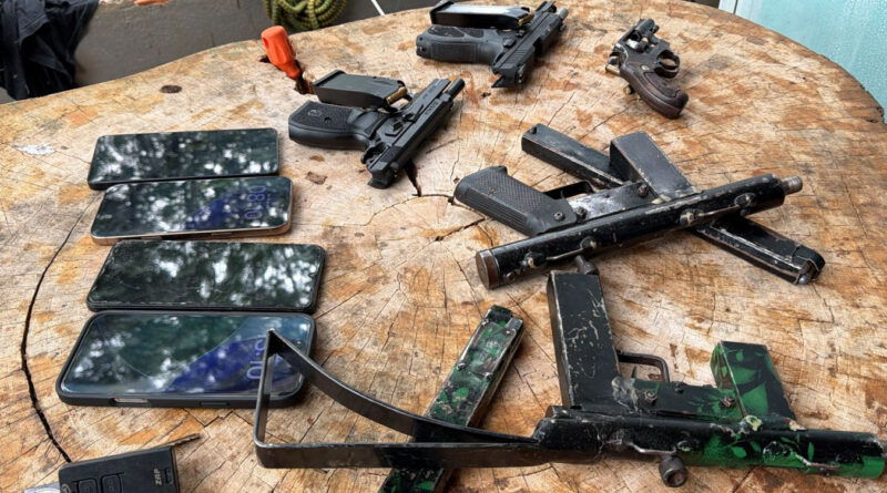 Na chácara, os policiais apreenderam cinco armas de fogo, incluindo metralhadoras artesanais, pistolas e um revólver. Também foram recolhidos diversos aparelhos celulares, que serão analisados, além da recuperação de parte da carga roubada. Dois veículos encontrados na propriedade também foram apreendidos.