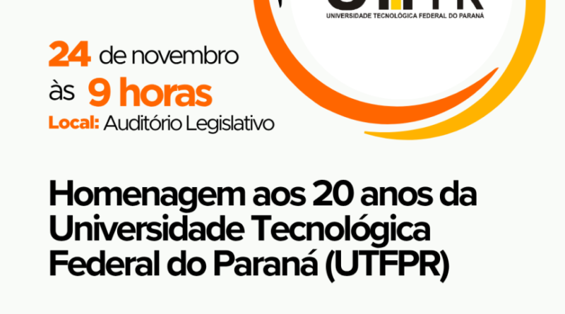 A Assembleia Legislativa do Paraná (Alep) realiza, na segunda-feira (24), às 9 horas, sessão solene em comemoração aos 20 anos da criação da Universidade Tecnológica Federal do Paraná (UTFPR). Proposta pelo deputado estadual Goura (PDT), a homenagem acontece no Auditório Legislativo e terá transmissão ao vivo pelas redes sociais da Alep.