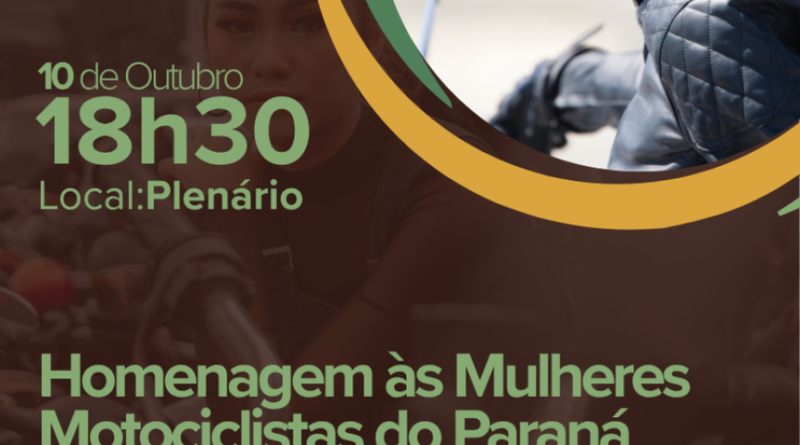 O deputado estadual Delegado Tito Barichello (União) promoverá uma Sessão Solene em Homenagem às Mulheres Motociclistas do Paraná. O evento será realizado no Plenário da Assembleia Legislativa do Estado do Paraná, no dia 10 de outubro de 2025, às 18h30.