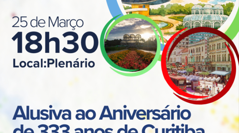 A Assembleia Legislativa do Paraná realiza, na próxima quarta-feira (25), sessão solene em homenagem ao aniversário de Curitiba, que completa 333 anos em 29 de março. O evento, às 18h30, ocorre no Plenário da Casa de Leis, por iniciativa do deputado Ney Leprevost (União).