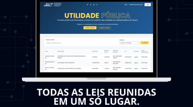Plataforma da Assembleia Legislativa simplifica manutenção do Título de Utilidade Pública para entidades paranaenses