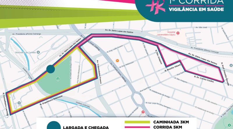 A 1ª Corrida de Vigilância em Saúde acontecerá neste domingo (14), com a concentração a partir das 6 horas e largada às 7 horas. A prova terá largada na Avenida Dário Lopes dos Santos, em frente às bilheterias do Estádio Durival Britto e Silva – Vila Capanema, no bairro Rebouças.