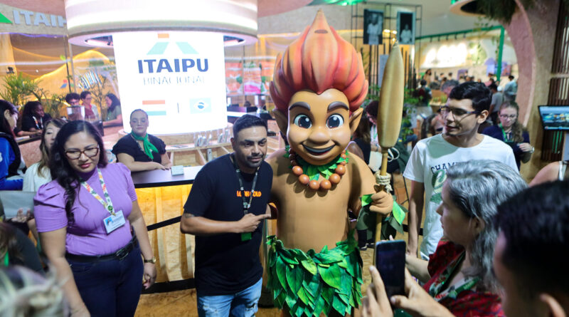 Curupira, Guardião da Floresta e mascote da COP30, visita estande da Itaipu