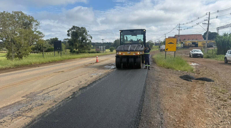 Está sendo executada uma nova camada de brita graduada simples de 13 centímetros e uma camada asfáltica de binder de 3,5 centímetros. As melhorias já eliminam o degrau com a pista e garantem mais segurança para todos os usuários da rodovia e moradores locais.