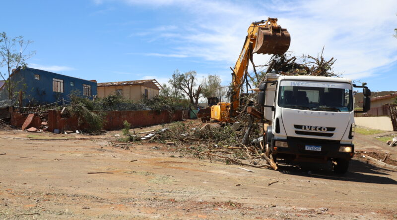 O Governo do Estado do Paraná está mobilizando um grande aparato de maquinários e equipes para o trabalho de limpeza e remoção de entulhos em Rio Bonito do Iguaçu, município atingido por um tornado com ventos de até 250 km/h na última sexta-feira (7).