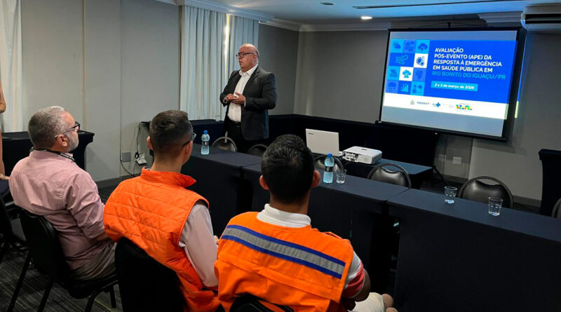 A Secretaria de Estado da Saúde (Sesa), em parceria com o Ministério da Saúde (MS), promoveu nesta segunda e terça-feira (2 e 3), em Curitiba, a Oficina de Avaliação Pós-Evento (APE) da resposta à emergência em saúde pública após desastre natural que atingiu Rio Bonito do Iguaçu, no Centro-Sul do Paraná. O encontro reuniu gestores, técnicos e especialistas para analisar as ações desenvolvidas após o tornado que atingiu o município em novembro de 2025 e definir estratégias para fortalecer a preparação do sistema de saúde diante de novos eventos climáticos extremos.