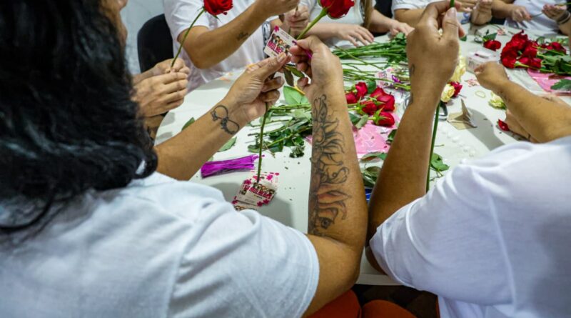 Mulheres privadas de liberdade preparam rosas que serão entregues no Dia da Mulher