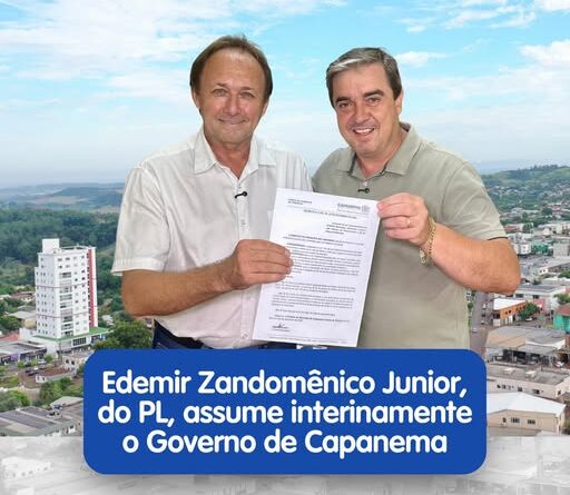 Em razão das férias regulamentares do prefeito Neivor Kessler, conforme o Decreto nº 7.997/2025, o vice-prefeito Edemir Zandomênico Junior assume