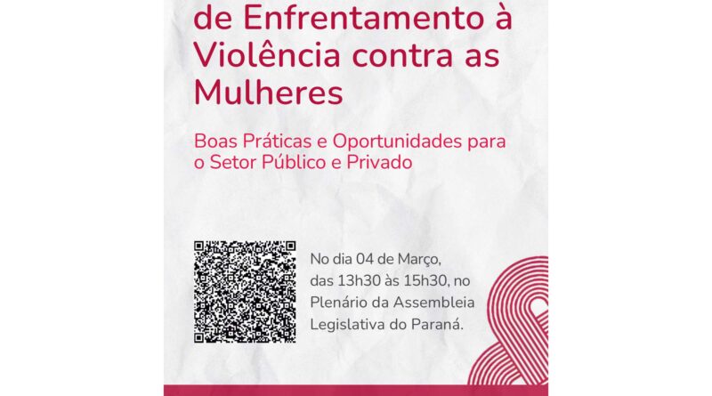 O Governo do Estado, por meio da Secretaria da Mulher, Igualdade Racial e Pessoa Idosa (Semipi), promove no dia 4 de março, às 13h30, no Plenário da Alep, o evento “Selo ABNT e Políticas de Enfrentamento à Violência contra as Mulheres: boas práticas e oportunidades para o setor público e privado”. O evento conta com parceria da Assembleia Legislativa do Paraná.