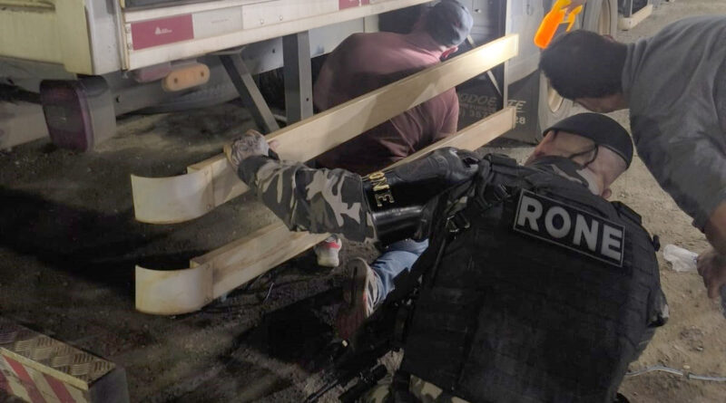 Durante a abordagem ao caminhão, o condutor não colaborou com a fiscalização. Diante da suspeita, os policiais identificaram que a carga estava escondida em um compartimento oculto, semelhante a um cofre instalado no baú do veículo. Para acessar o local, foi necessário realizar a abertura por baixo, pelo assoalho do caminhão.