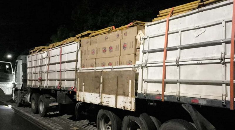A ação ocorreu durante bloqueio policial no trevo de acesso ao município, na rodovia PRC-158. Os policiais abordaram um caminhão trator acoplado a um semirreboque e encontraram os produtos ilegais.
