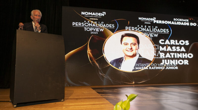 O governador Carlos Massa Ratinho Junior foi eleito a Personalidade do Ano pelo Prêmio TOPVIEW Personalidades 2025. A cerimônia de entrega ocorreu na noite da última terça-feira (9), no Museu Oscar Niemeyer, em Curitiba. Representando o chefe do Executivo estadual, o vice-governador Darci Piana subiu ao palco para receber o Troféu Mário Petrelli, símbolo da premiação criada pelo artista argentino radicado no Brasil, Alfi Vivern.
