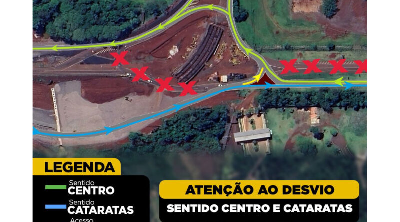 O usuário que estiver transitando no sentido Parque Nacional do Iguaçu será direcionado para a marginal direita, enquanto o usuário no sentido Centro será direcionado para a esquerda.